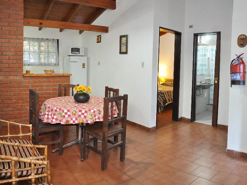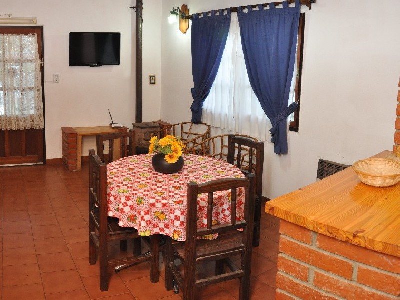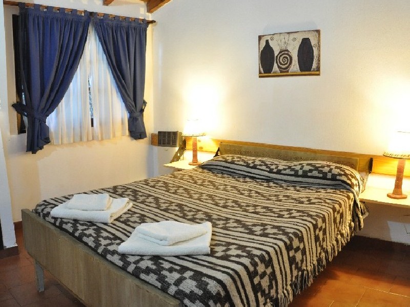 La cabaña 4 está construida en una sola planta en material. Consta de dos dormitorios, baño, cocina-comedor y porche. Una de las habitaciones tiene cama matrimonial y la otra tiene dos camas individuales es decir que tiene capacidad hasta 4 personas.