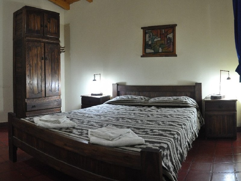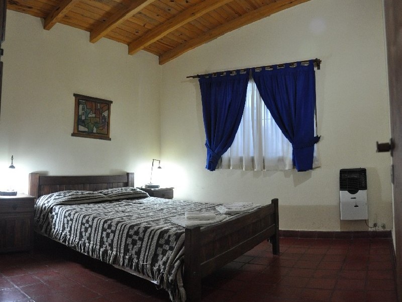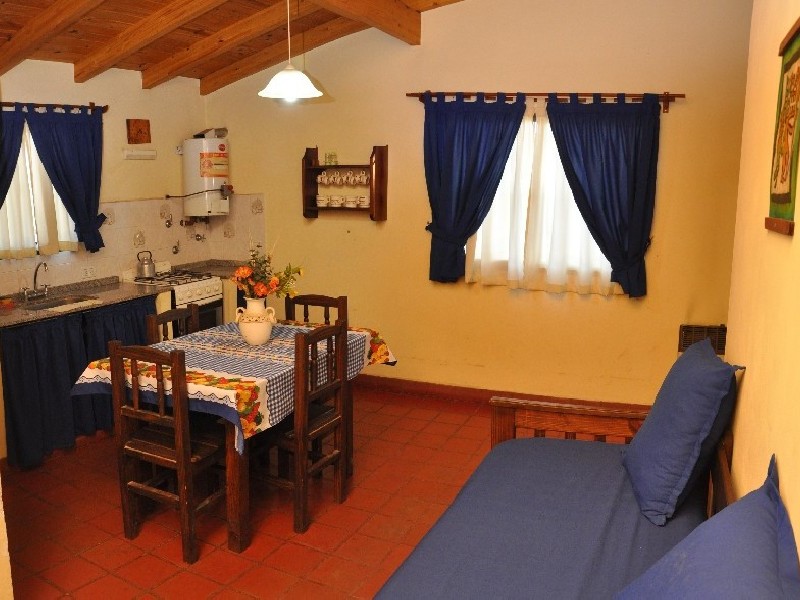 La cabaña 7 está construida en una sola planta en material. Consta de un dormitorio amplio, baño, cocina-comedor y porche. La habitación tiene cama matrimonial y en el living-comedor disponemos de un diván cama, es decir que tiene capacidad hasta 3 personas y se podría colocar una cunita para un bebé.