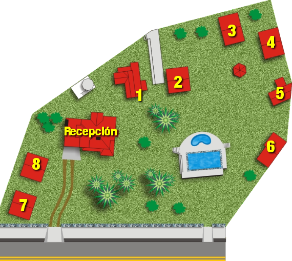- Las cabañas ubicadas dentro del predio bien separadas entre si.