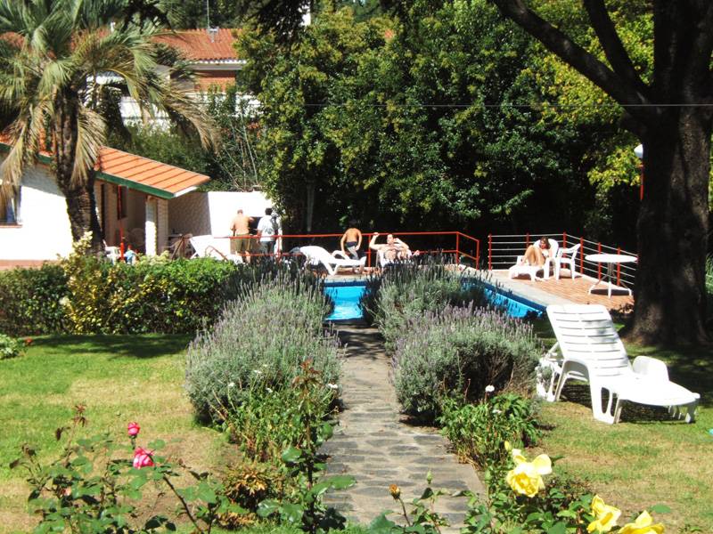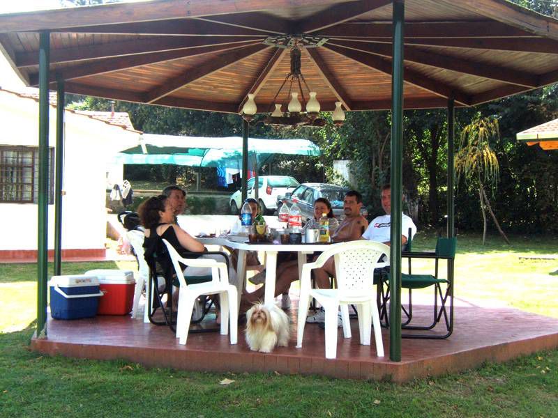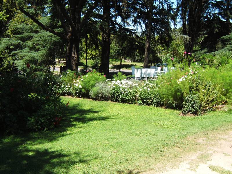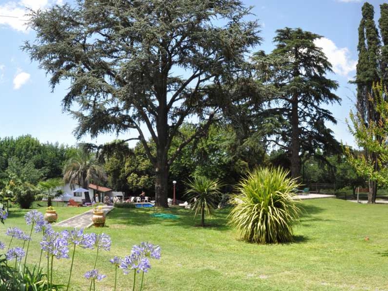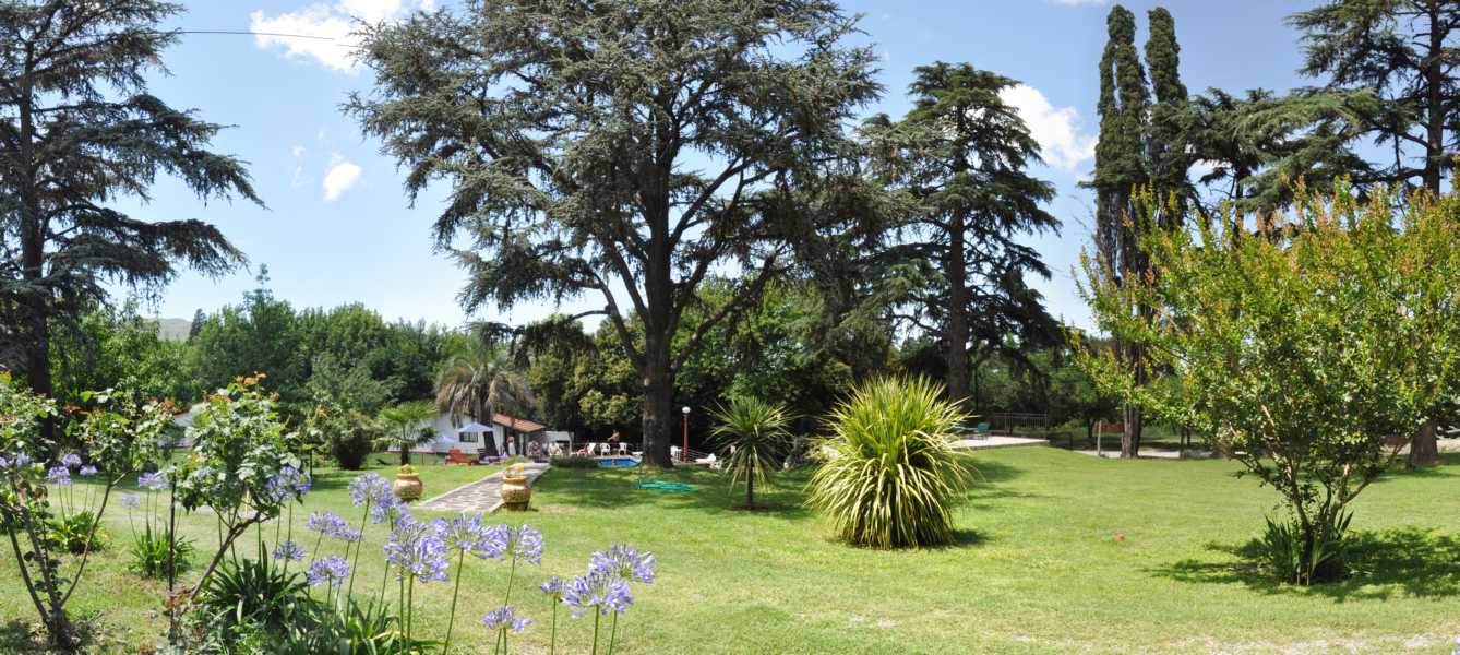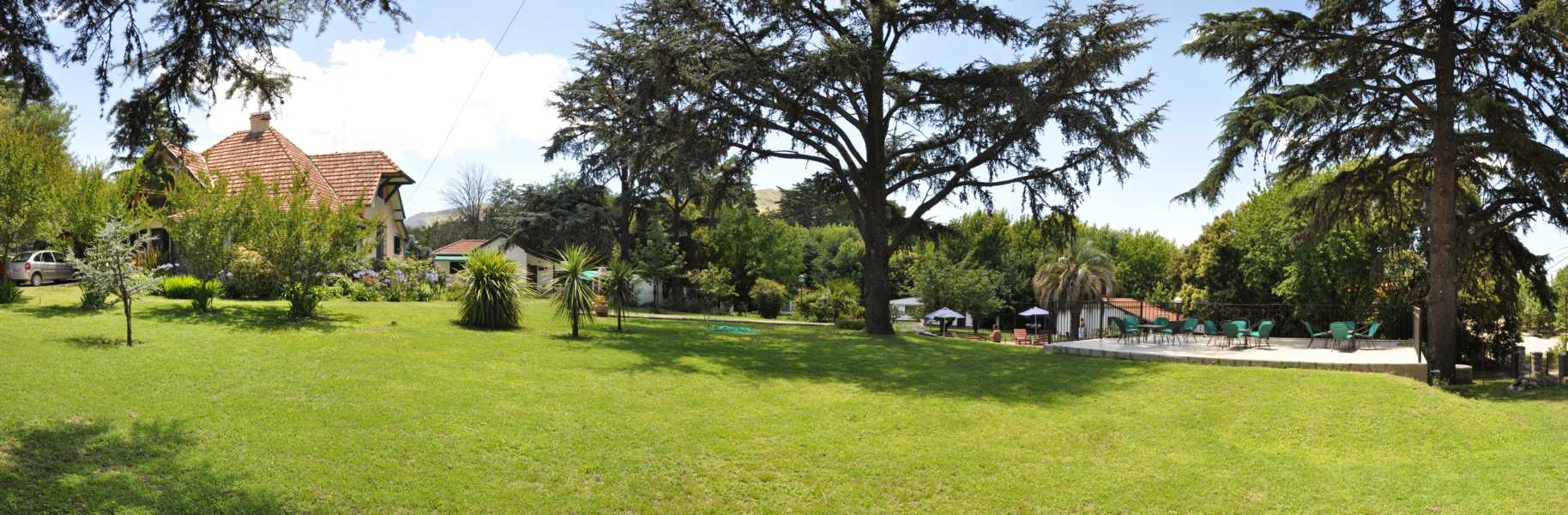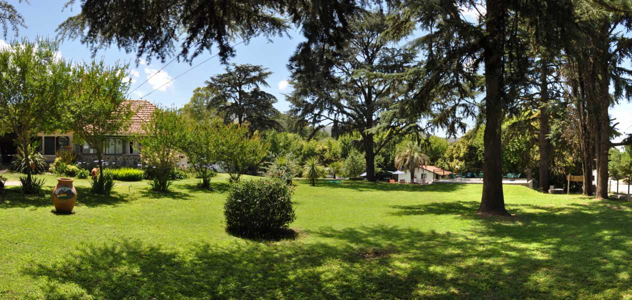 Gran parque de 5.000 m2. con césped, añosos pinos, palmeras y frutales. El lugar perfecto para realizar actividades al aire libre, ya sea compartiendo un asado, realizando juegos, o tan solo sentándose a leer un libro debajo de un árbol.