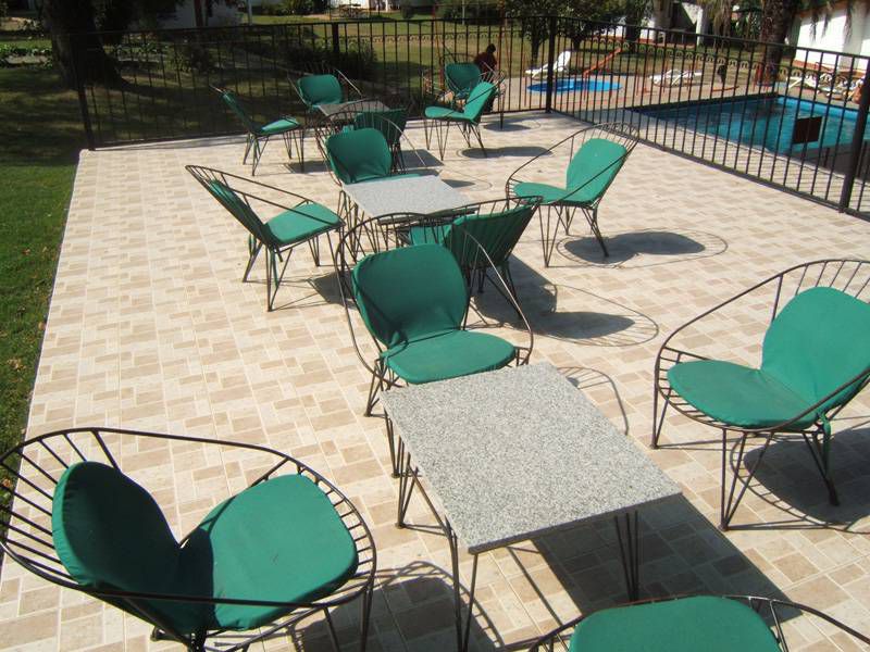 Lugar ideal para sentarse a tomar unos mates, luego de una tarde de pileta, o de una siesta reparadora. Ubicado sobe el salón de juegos y al lado de la pileta, la terraza tiene vista a todo el complejo y a su parque lleno de verde.